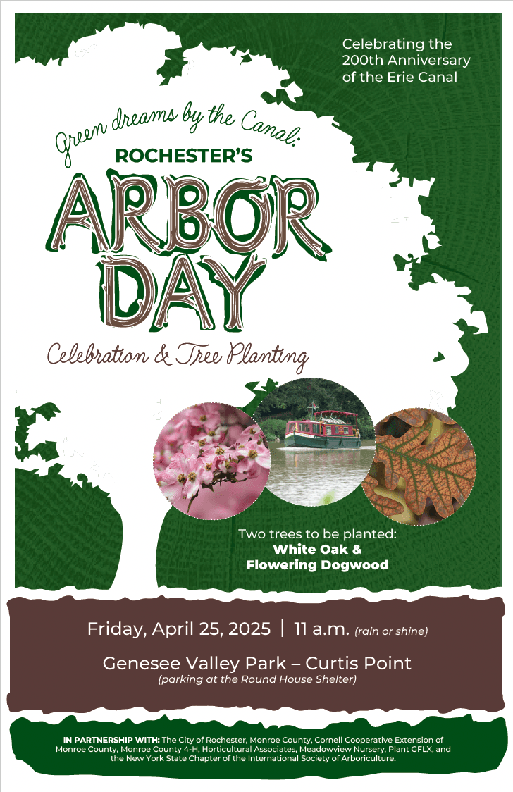 IN PARTNERSHIP WITH: The City of Rochester, Monroe County, Cornell Cooperative Extension of Monroe County, Monroe County 4-H, Horticultural Associates, Meadowview Nursery, Plant GFLX, and the New York State Chapter of the International Society of Arboriculture.